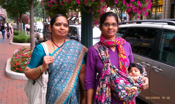 Walking around town with baby in the sling.