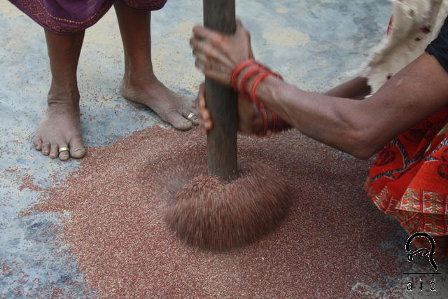 Pounding Finger Millet (Ragi) in Appalagraharam, Andhra Pradesh