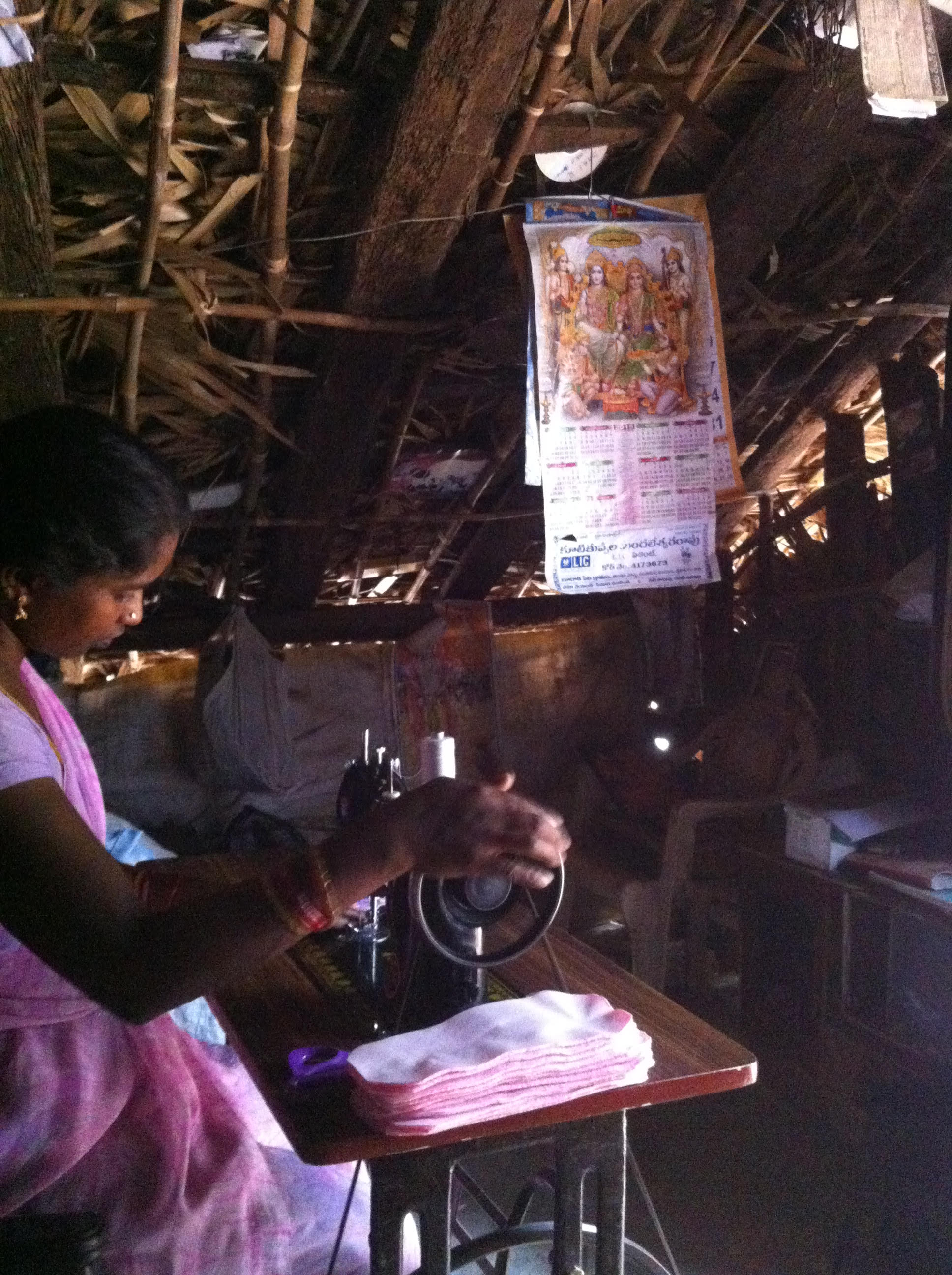 Woman sews cloth pads at home in a village in Srikakulam District.  Photo Courtesy Jivika.