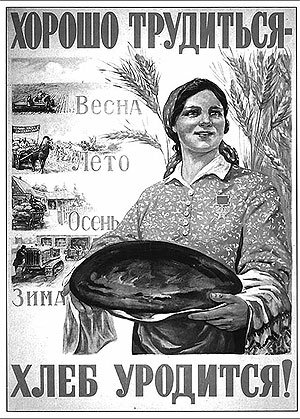 Matters of taste and food habits are wrapped up in social and political dynamics. Consider the Russian black bread (черный хлеб or chor-nee klebph), of which equally fervent social statements have been made. On this Soviet poster proclaiming “work well and bread will grow!” the bread that the woman proudly displays is black, its color coming from the rye as well as the molasses that went into it.