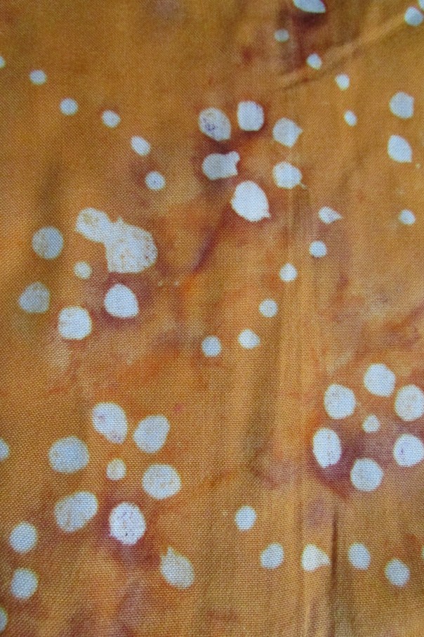 C: Milk-n-Honey: Batik print on swirly orange viscose.
