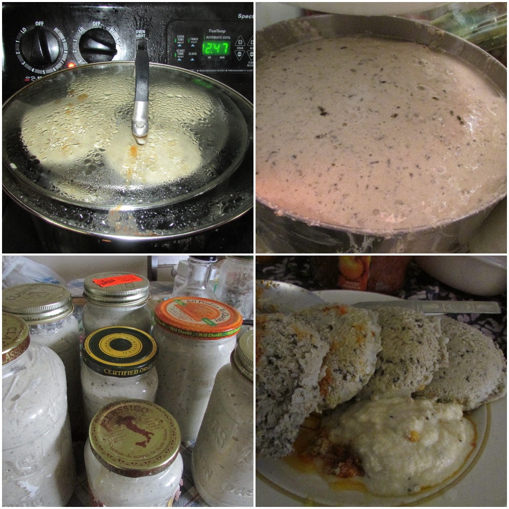 I actually did not have enough rice yesterday when I ground the minapappu so I got more early this morning, soaked it for a few hours, ground it and mixed it right in. Everything else had had time to ferment so I thought it would be okay for the ground rice to go in right away. Maybe the idlis would have risen more had the rice fermented as well but anyway. Reader, I made them. While the idlis were steaming away, I put the rest of the batter away – some in a large bowl which I put in the fridge and the rest into bottles for sharing with friends.