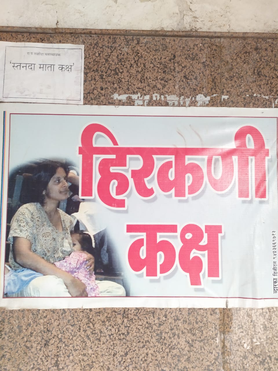 A friend sent me a poster seen in a bus stop in Taloda. Indicating the location of the”Hirkani Kaksha” or “Breastfeeding Room” was a colorful poster with a picture of none other than yours truly. At first I was worried that it was some kind of advertisement. When I learned that this was a room at a bus stop to allow mothers a private place for breastfeeding I worried that breastfeeding was being pushed out of the public space. I have always defended the right of babies to breastfeed wherever they are allowed to be. As long as breastfeeding in public is still welcome, however, I can see the value of also having the option to get out of the crowd, esp if baby is easily distracted. And I am particularly pleased with the choice of the photo, showing a mother who is calmly looking ahead while baby – toddler, in fact – nurses.