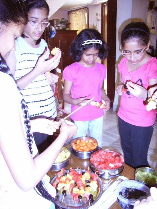 Kids make colourful fruit sticks