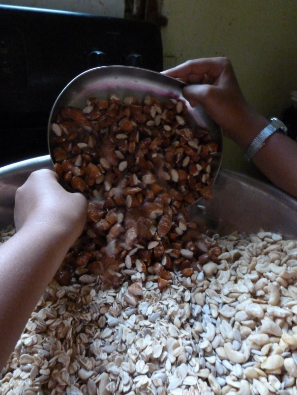 Chop 2 cups of almonds and add.